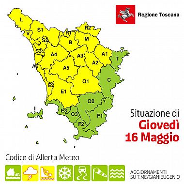 TOSCANA — Temporali forti in arrivo in Toscana, che si prepara al passaggio della perturbazione con un bollettino d'allerta. La sala operativa di protezione civile regionale ha emesso un codice giallo per rischio idrogeologico e temporali forti per l'area centro-settentrionale del territorio regionale dalle 6 alle 20 di domani.